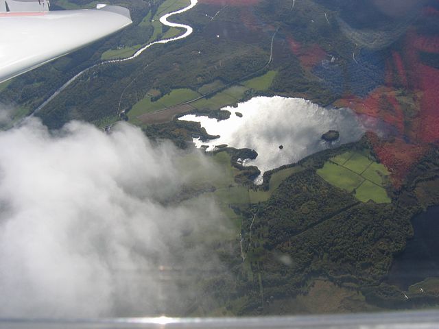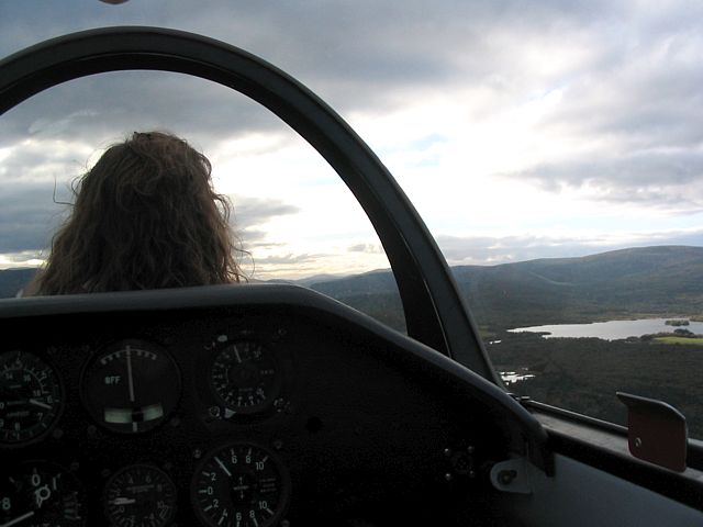 | Clubhouse as seen from 778 during takeoff. | Views from the back seat of 778 during an afternoon launch and flight. Nicki Marchant in front. | Lochs Kinord and Davan with Morven in the background, seen from the southeast. | ||