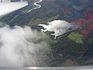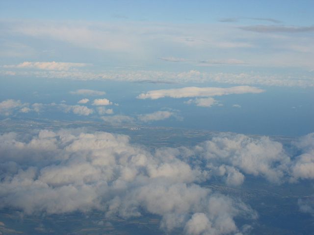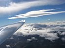 | From 15,000 feet the whole of the East Coast of Scotland was visible from many miles inland. | Climbing slowly through 18,000 feet above Tarland. | Everything looks so small this high up. The local lochs are just visible 1st pic bottom. The dark cloud 2nd pic top right is a wave lenticular cloud. The 'scratches' there are ice crystals forming on my canopy. The ground looks dark as it is in the shade late in the day. | As I descended I took a picture of the airfield from 9000 feet. | |