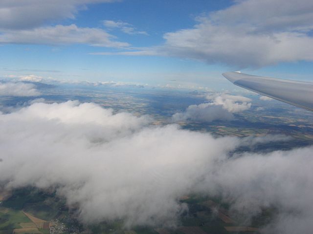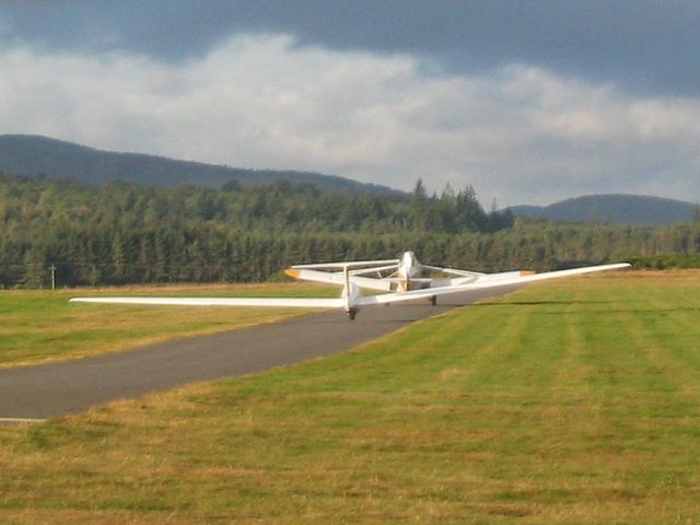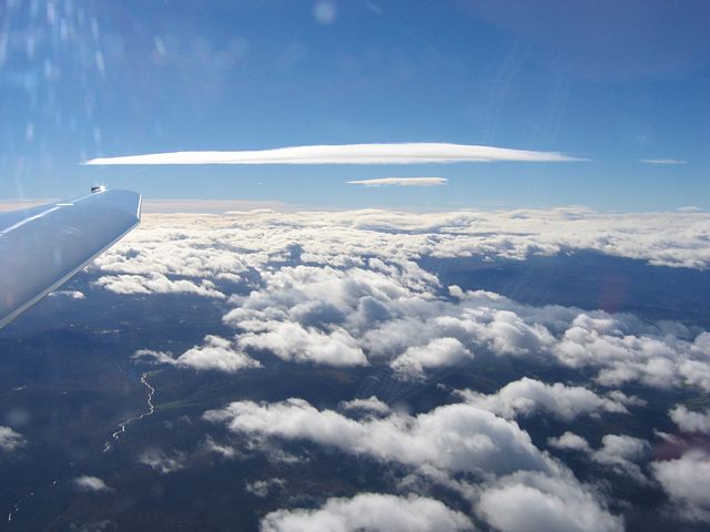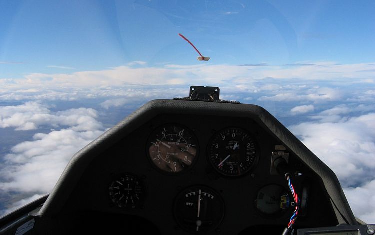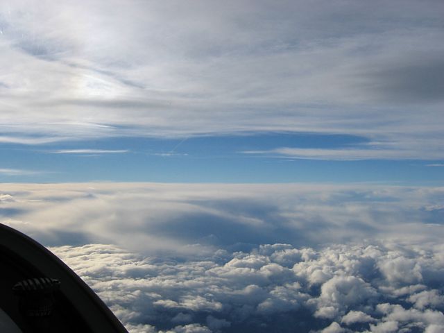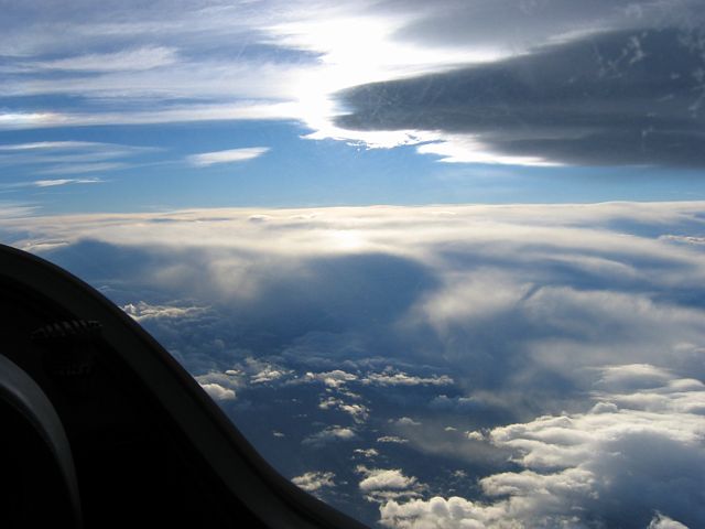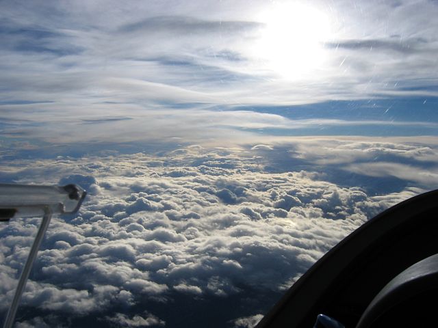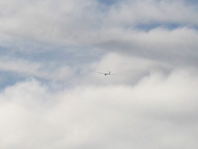 | The Lasham Grob 103 landing before I took off in it on the 5th. | View Southeast back to the airfield as I climbed above the clouds just West of Tarland. | Glider above me in the wave. | Looking westwards towards bad weather over the Cairngorms from about 15,000 feet just north of Ballater. | |