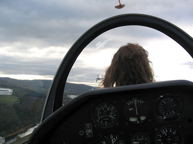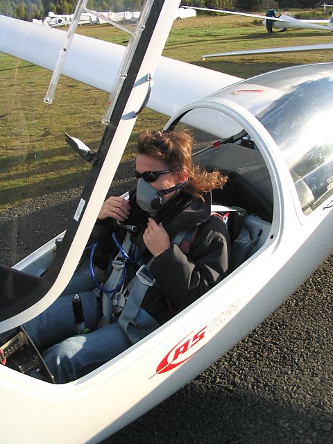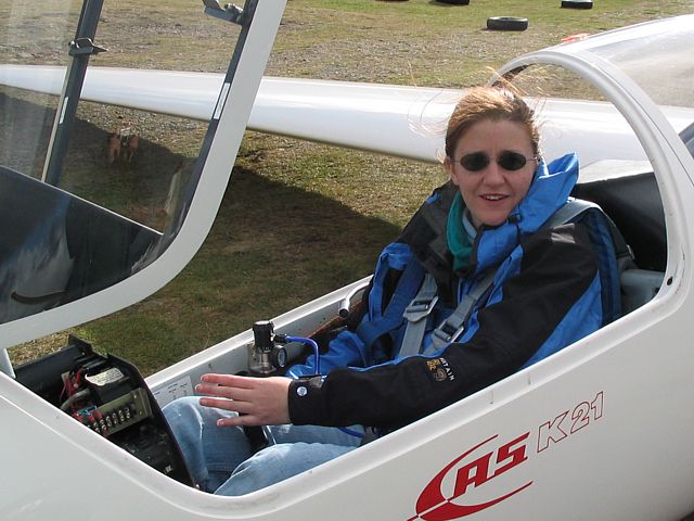 | Nicki Marchant and Gordon MacDonald enjoying the ride back as we retrieve a glider. | Next up in the front of 778 is Alison Booker. |