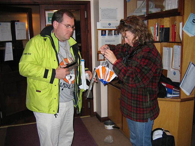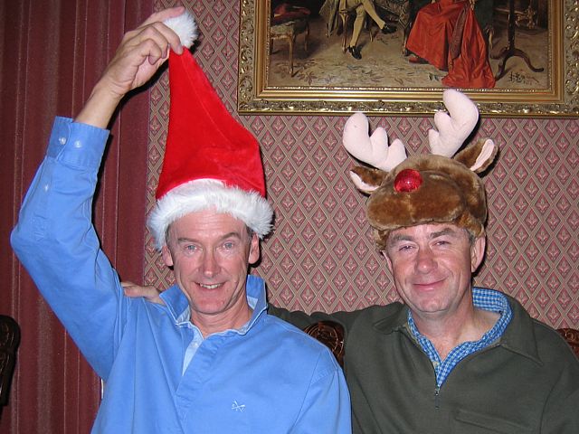 | John Simmonds and Chris Mann decide to celebrate Christmas early during the final evening meal. | Al Nunn preparing his next masterpiece - a shot of the whole group. |