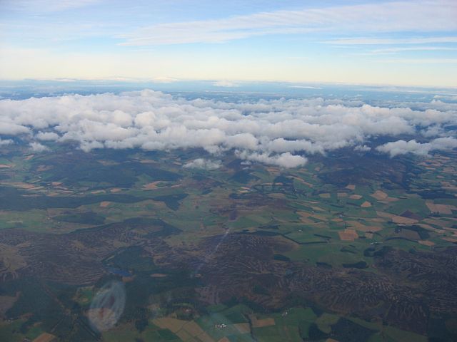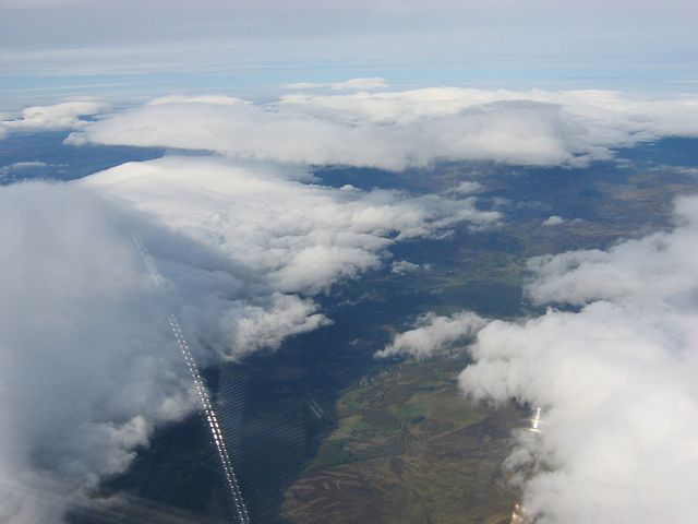 | A beautiful rippled lennie hiding below the main Loch Muick lennie. | Sun starting to get low. Golden hour makes the cloudscapes even more stunning. | Descending below 20,000 feet taking yet more pics as I go. | This lennie has irridescence. I think that is Loch Tay in the far background. | Looking roughly northwards from 19k. Anyone got any idea where the water is? I can't ID it! |