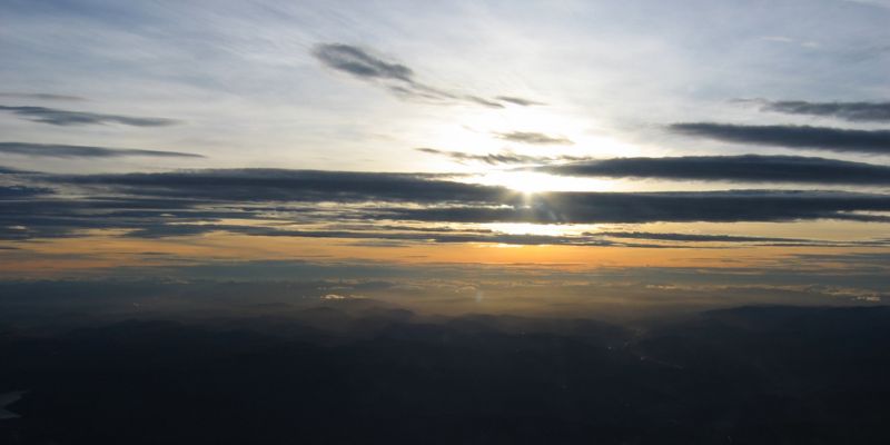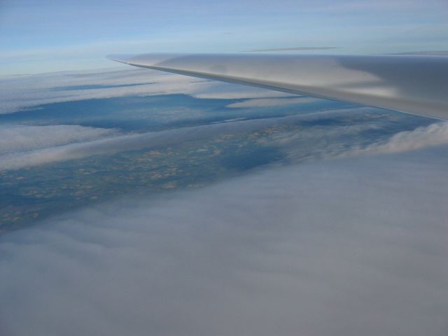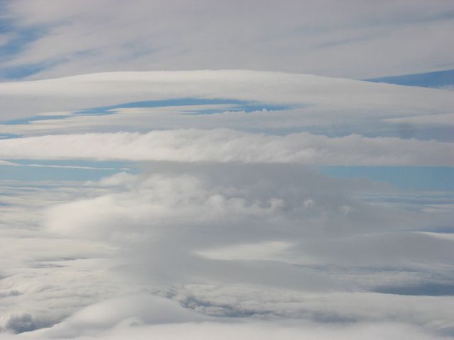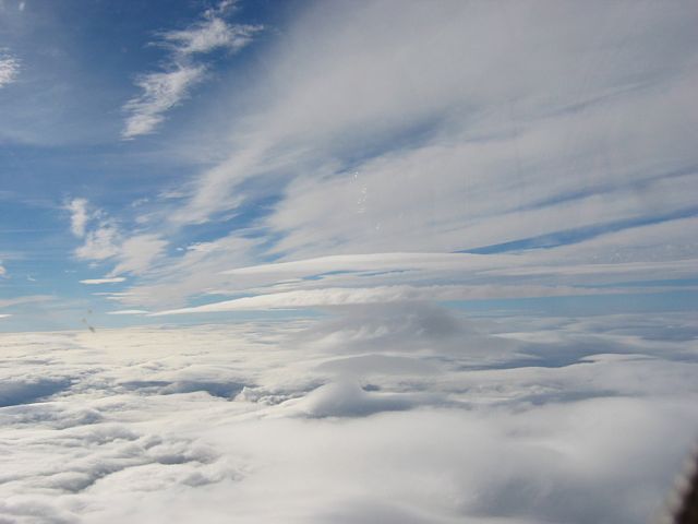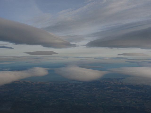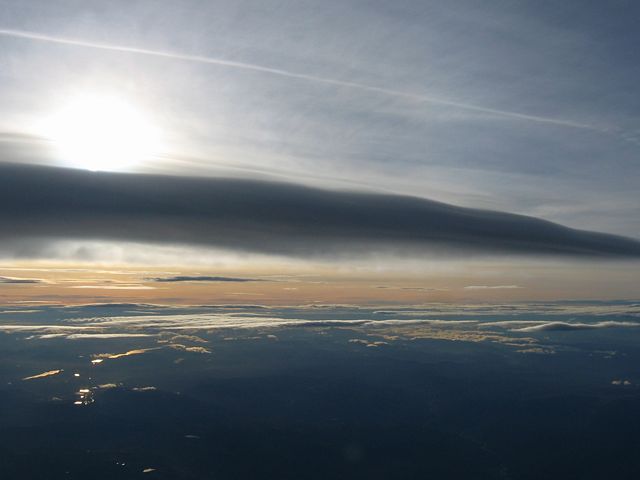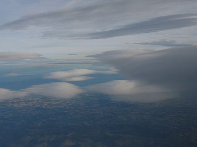 | Yet more lennie shots as I continue to descend. Some shots display pretty ripples while others make the sky look like a giant climbing frame. | Now below 10,000 feet, I soaked in the colours of the pre-sunset cloudscapes as I slowly descended back to earth. | ||||