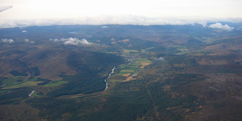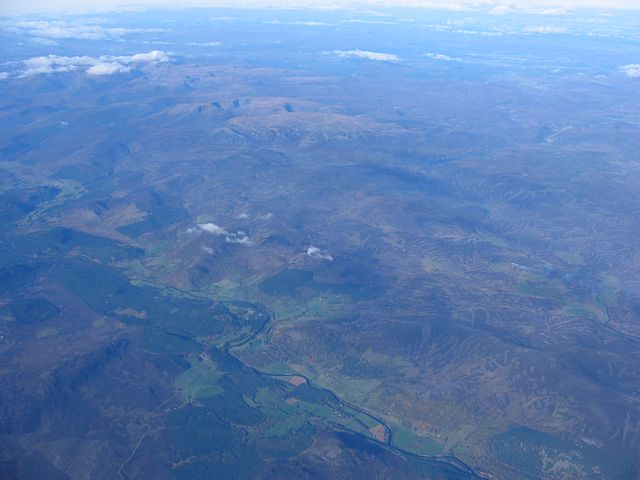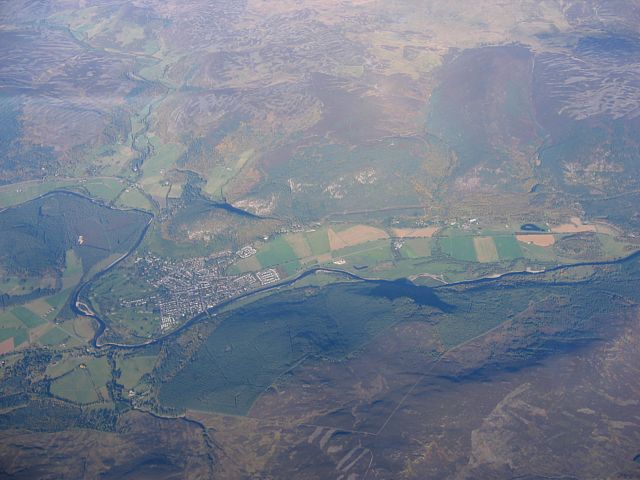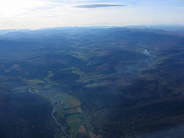 | Looking up the Dee Valley to the Cairngorms from 19,000 feet. | Looking back towards Aboyne from 19,000 feet. | A closeup of the Cairngorms. | 2 shots of Ballater and surrounding valley from the SE and South as I descended. | |