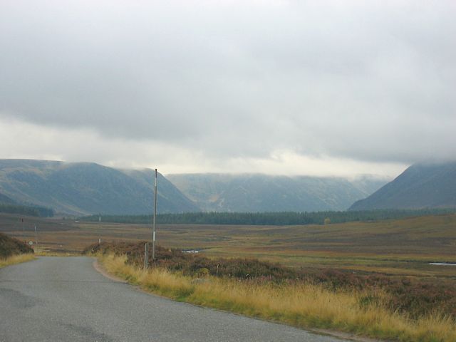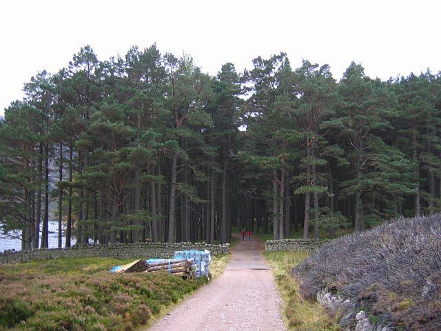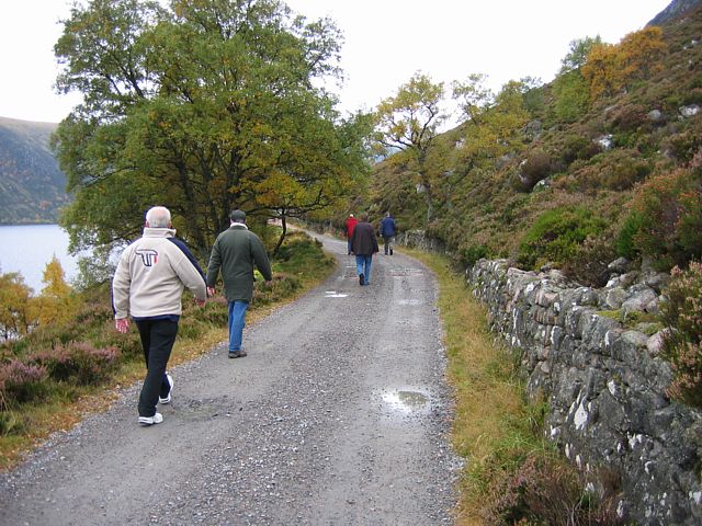 | Driving up Glen Muick to the loch. | Crossing a bridge over the river Muick at the start of the walk. | Low cloud hugging the mountains to the north. | Approaching the loch. | Looking ahead to the north track. We went anticlockwise round the loch. | |