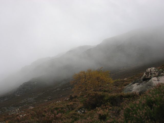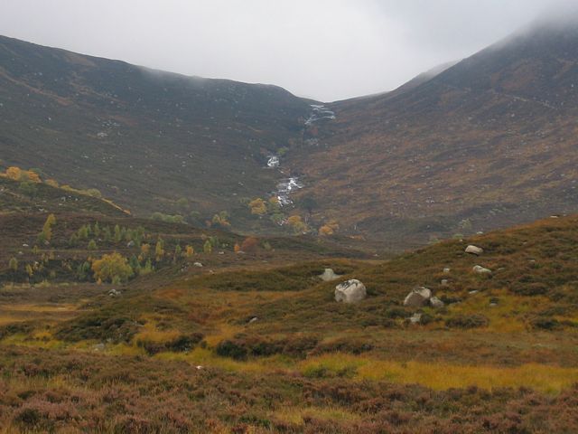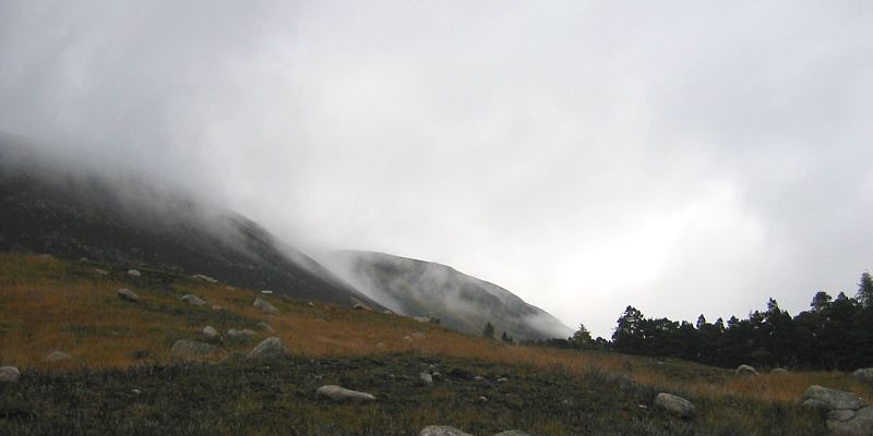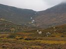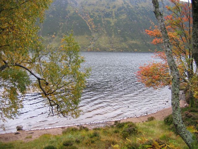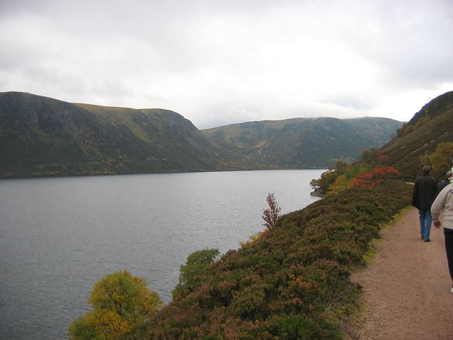 The 9th October was the only unflyable day of the week, with low cloud hugging the mountains and hills all day. So after lunch we decided this was a good day to walk around Loch Muick. It was a long tiring walk of 10 miles but the views even with the cloud were nice. It was also nice to see this loch from the ground for a change, and compare it to the more familiar aerial view from high up. We drove up Glen Muick from Ballater to Spittal of Glen Muick car park and walked from there.