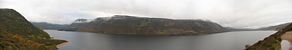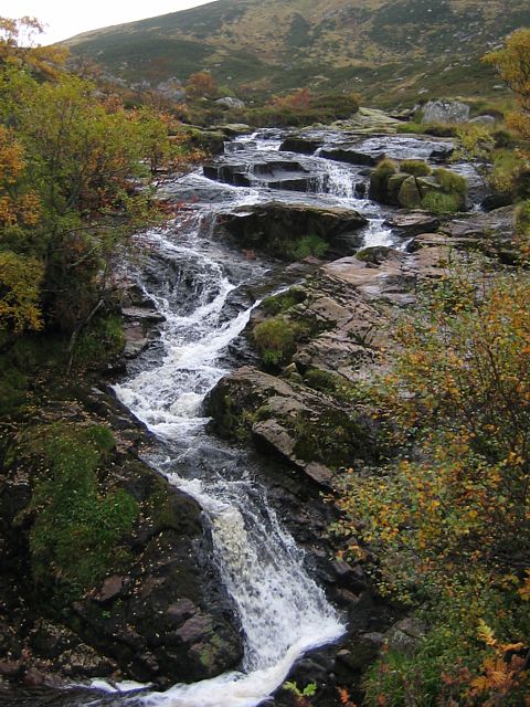 | The house in the forest from the other side of the loch. | Walking past a waterfall half way along the southern path. | A 6 shot panorama of the whole of Loch Muick taken from the highest point on the southern path. |