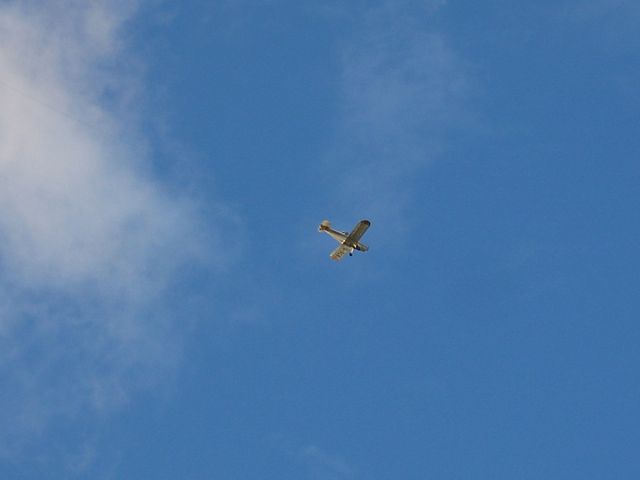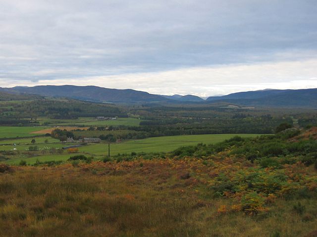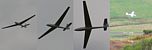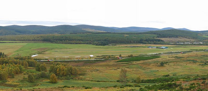 | Looking down the valley towards Aboyne itself. | Looking up the valley towards Ballater. | The heathers and other rock plants had a lovely colour. Airfield can be seen at the top of the pic. | A montage of 3 long range shots of a Pawnee tug circling as it descended to the airfield after towing a glider up. You can just make out the rope. | Looking NW to Morven. |