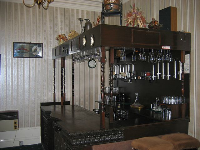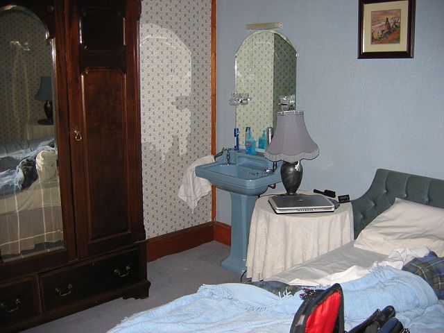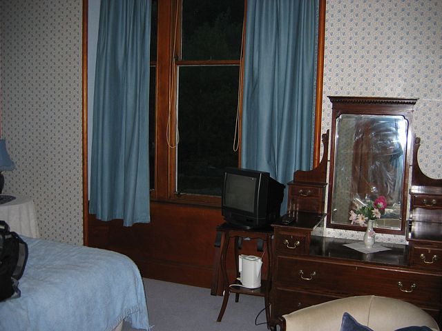 | Ravenswood from the driveway outside. | Some of the loos are antiques in themselves! | The dining room is big - easily accomodated the Booker guys the week before I was there. | Two shots of the lounge - a long narrow room. Conservatory exit opposite the hall entrance. | The hall. Front door on my right. Reception desk on my left. | |