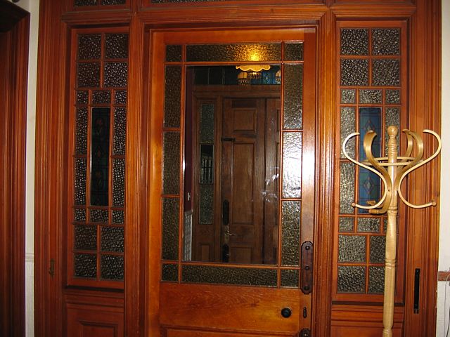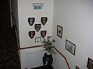 | The double front door and the reception opposite. | Two shots of the bar. | The kitchen. | Coats of arms at the top of the stairs. | ||