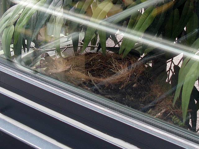 Note: By now we'd noticed that she seems to have gotten used to life on the window ledge by a busy stairwell. It was possible to look at her through the window just centimeters apart without her even flinching. (I guess if she hadn't felt comfortable and safe in our presence she wouldn't have nested there in the first place.)