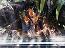 The chicks are looking more and more like adults now with their newly grown feathers looking almost complete (albeit missing the long tail feathers). | Feeding time. | Closeups of one of the chicks lying on top of its siblings. |