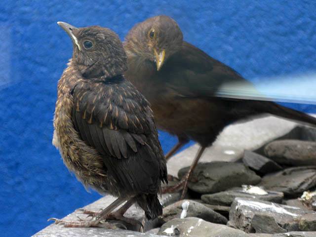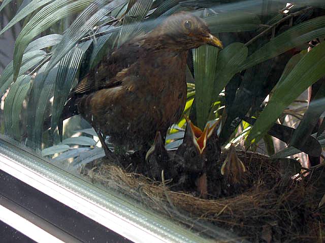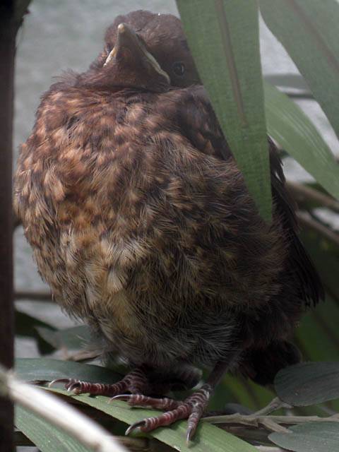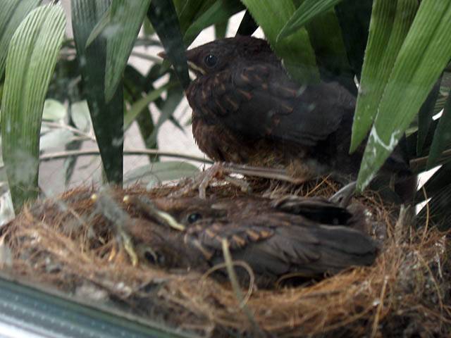 Thankfully by Monday 17th all of the chicks and the parents had vanished. So I guess last week's chick in the tree was just biding its time getting ready for the outside world. Apart from a brief appearance by a chick on Thursday 20th they haven't been seen since. So that is the end of the story. According to the RSPB website Blackbirds can sometimes use the same nest for successive broods, and can have up to 3 broods a year. So will Mrs B return in July for another brood? It is certainly a great location for a nest - sheltered and out of reach of predators. Time will tell.
