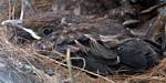Looks like one chick is hugging its sibling... | More views of the chicks resting between feeds. | Closeup of one chick's head. | Another view of the chicks resting between feeds. |