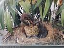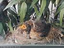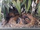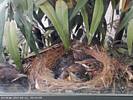 Chick 2 exploring outside the nest but returning. | Chick 2 snoozing after all that excitement! | Chick 2 exploring some more. |