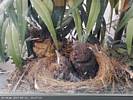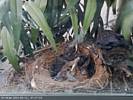 Another cramped looking view of all 4 chicks, looking right down one of their throats. | Eyes opening. | Eyes opening. Feeding time. | Mum brooding the chicks. Notice how much higher she sits now with bigger chicks underneath her. |