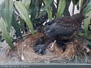 Mum still brooding the chicks who often now stick their heads out from under her. | Mum cleaning the chicks? | A curious capture. It looks as if mum just got jabbed up the bum by a chick? |
