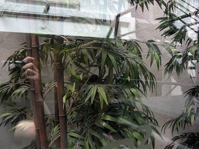 Mind the reflections. Being a busy stairwell with chrome handrails, an awkward sun angle and dark shadows they are hard to avoid. Around lunchtime seems to be the best time when a nice shaft of sunlight illuminates the nest for a short while.