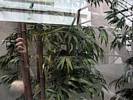 I was back in the office on Thursday 13th. Early in the morning one chick was seen running around on top of a wall high above the nest behind a layer of spike strips meant for stopping pigeons. It ran back and forth several times before bumping into the side of a spike. It bounced backwards, fell over and then scrabbled back up onto its feet again before flying up and over the top of another wall above and vanished. I guess that was one of the two older chicks bringing a comical start to the day. What I guess were the two younger chicks hung around closer to the nest in branches of the fake trees (one was on the ground and then flew up onto a branch). Periodically the parents came and fed them both in turn. They seemed quite happy lazing around, having a snooze. Photography was a challenge as light levels were very poor. But I got some half decent shots. All the while they were growing rapidly, almost as big as their parents now but just lacking the long tail feathers. We dismantled the webcam today since all it was showing now was an empty nest.