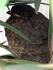 Early low light level shots of the Female Blackbird resting between material gathering missions. | A better shot at lunchtime when the sun came out. | A completed but empty nest. Where did she go? |