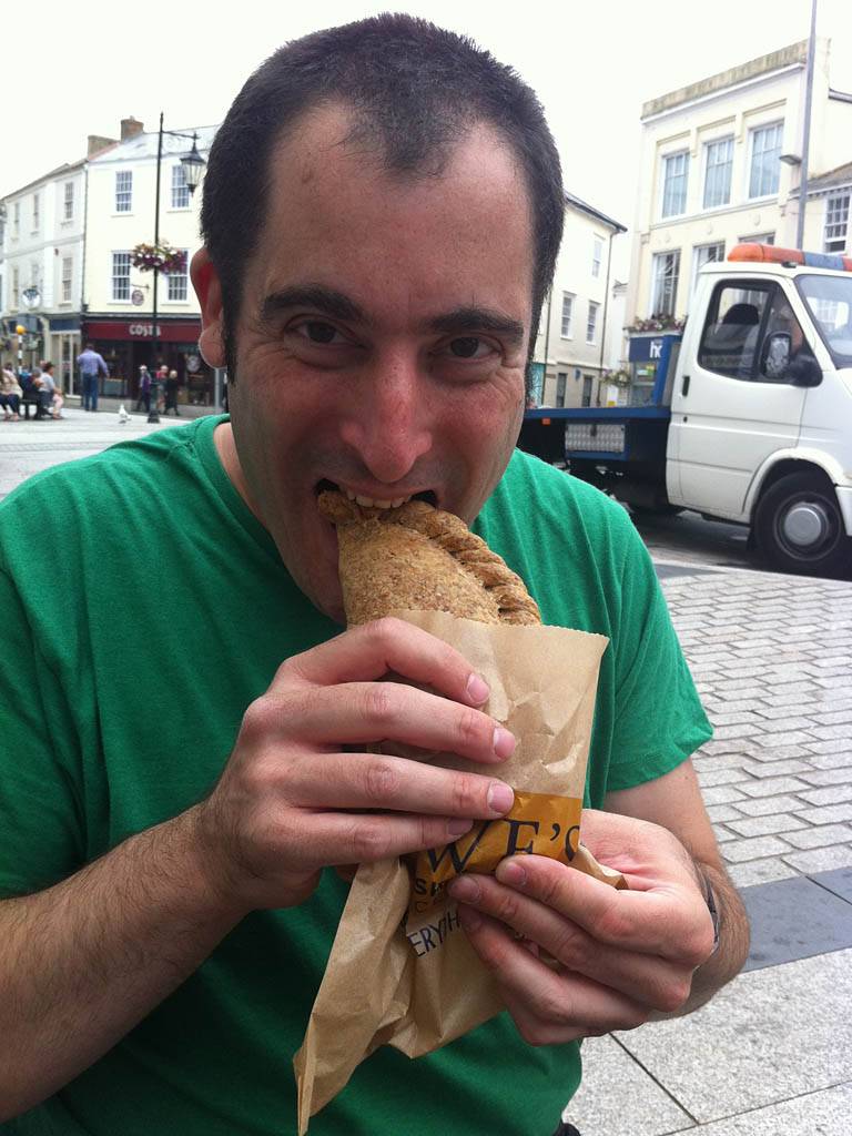 After a long walk from the visitor centre back to the car we drove to St. Austell. There didn't seem to be much of interest here so we decided not to stop and carried on to Truro. Here we found a car park by the cathedral where we parked up. We found a nice Cornish Pastie shop in the town centre and bought pasties at 1:20PM. I had a vegetable wholemeal pastie and Renée had a cheese and onion pastie. They were both amazingly delicious! We both fancied something sweet after that so we then had banana and nutella crepes in a nearby 'smoothie bar'.