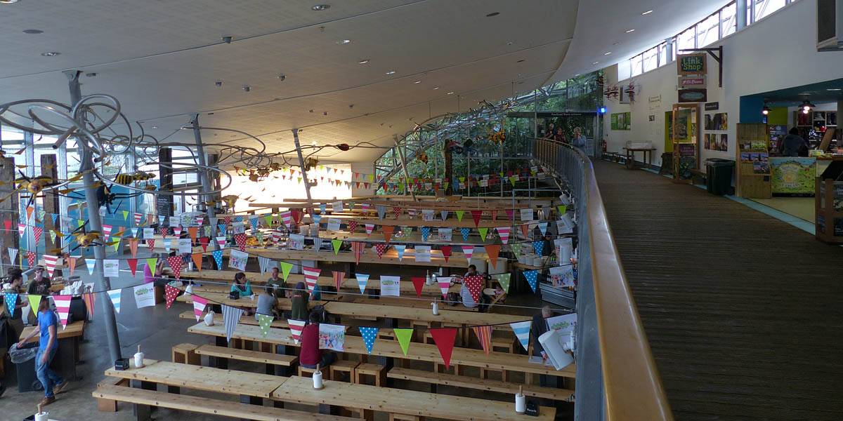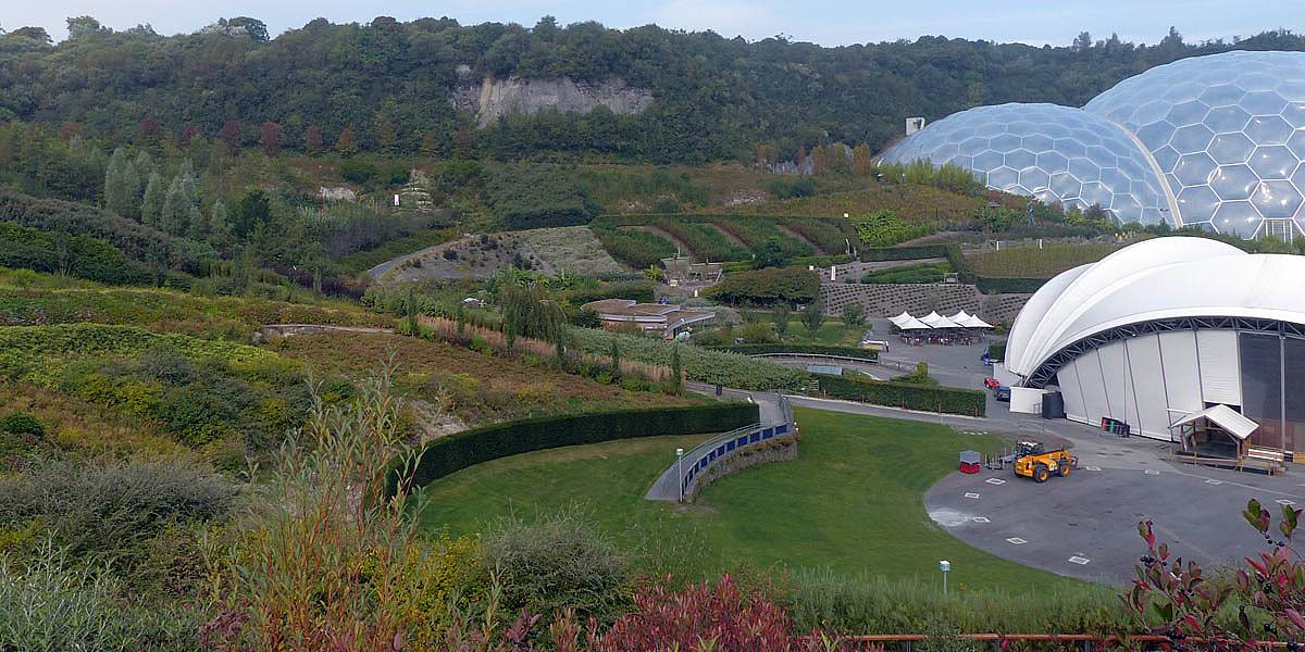 Outside we explored a bit (while still cooling down from the rainforest biome!) there were more sculptures as well as a fair few eco displays. It was nice to get a good look at growing crops like maize, wheat and rice. We just looked briefly in the 'Core' exhibit. After a bit more exploring we took a look back at the food available, and decided we would eat elsewhere. We decided to take the road train back up to the top of the quarry at 12PM.