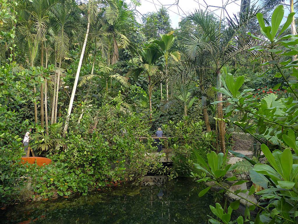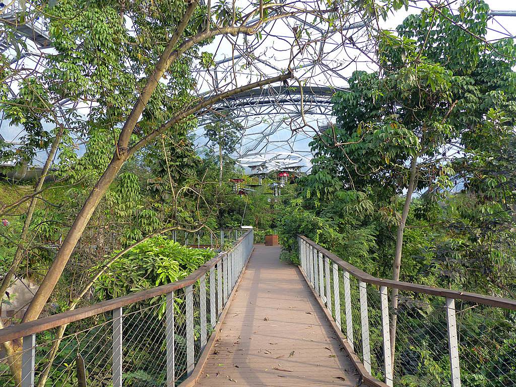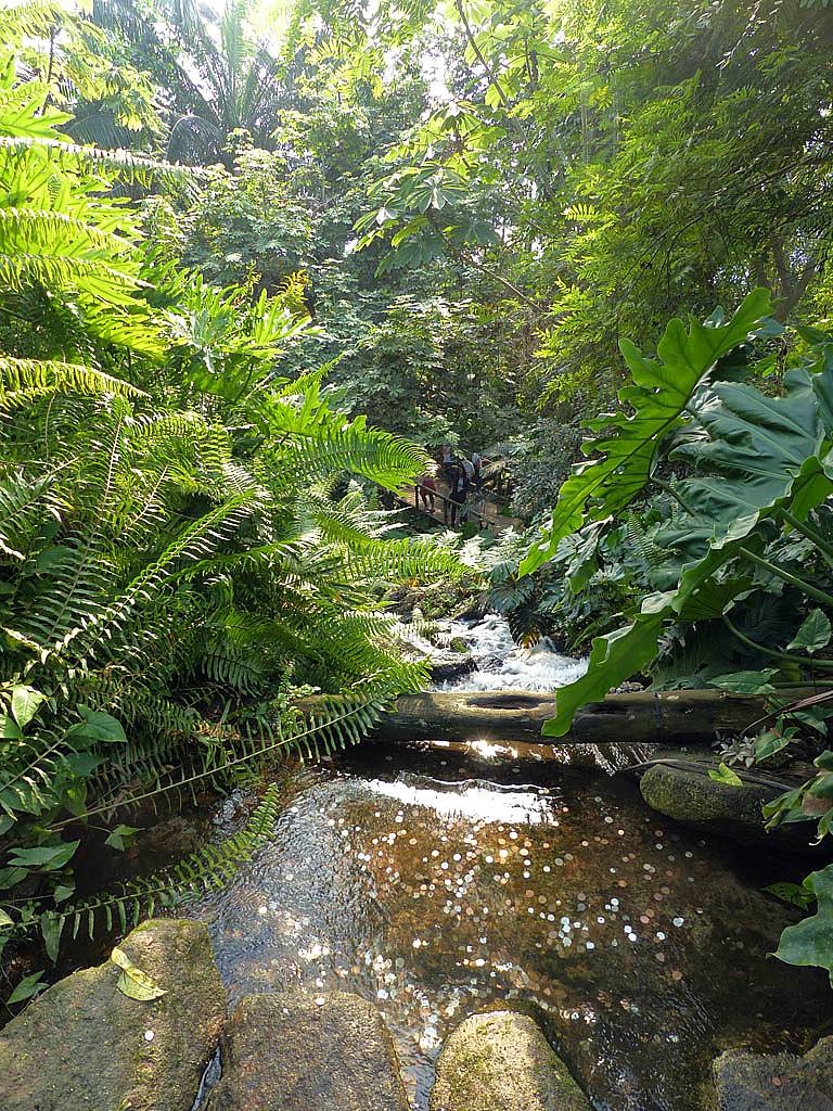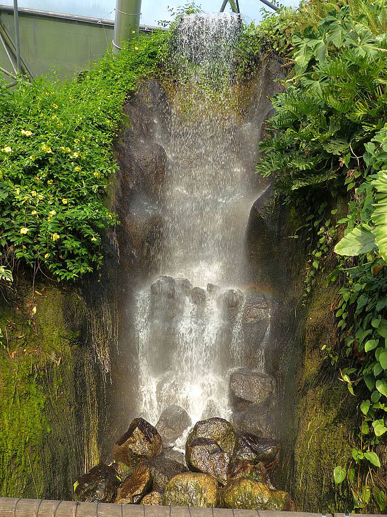Inside the rainforest biome it really was stiflingly hot and humid. 25 minutes to walk around was more than enough in those conditions. While in there we saw a variety of sculptures and tropical plants including bananas and cocoa plants and explored on the ground as well as an elevated 'treetop walkway' before we descended past a nice waterfall on the way towards the exit.
