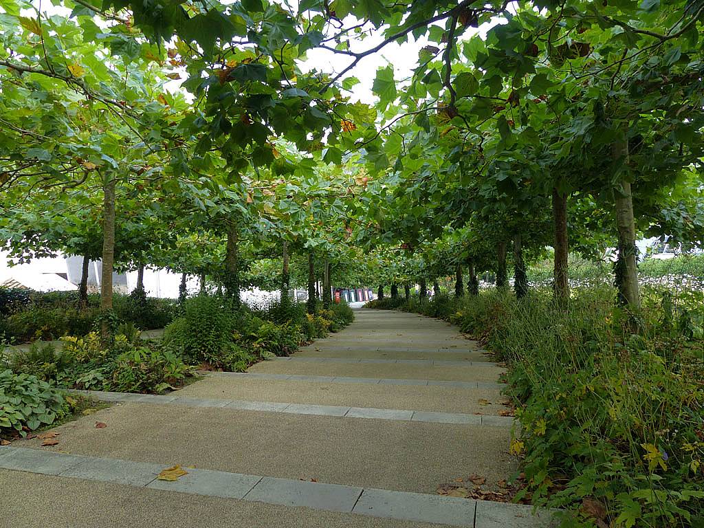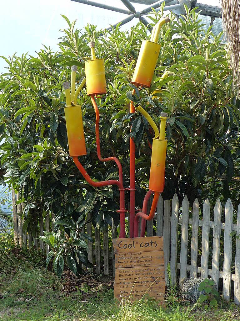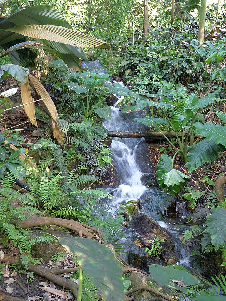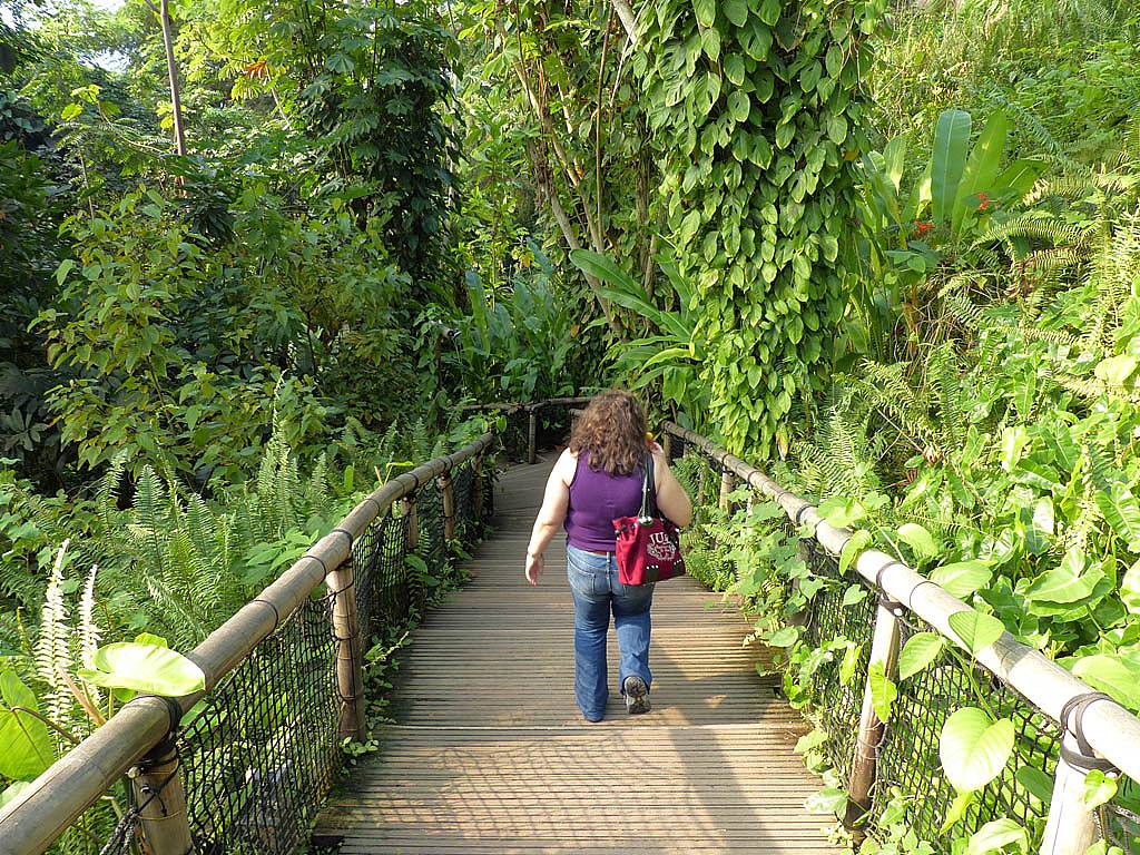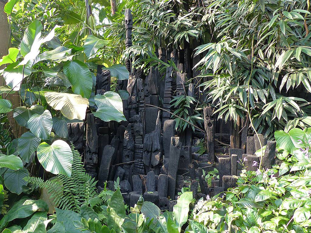 Inside the rainforest biome it really was stiflingly hot and humid. 25 minutes to walk around was more than enough in those conditions. While in there we saw a variety of sculptures and tropical plants including bananas and cocoa plants and explored on the ground as well as an elevated 'treetop walkway' before we descended past a nice waterfall on the way towards the exit.