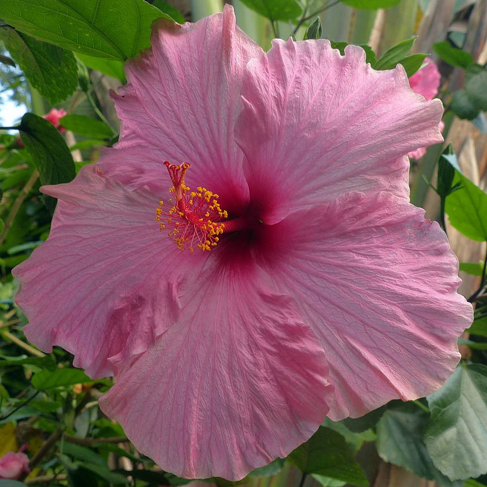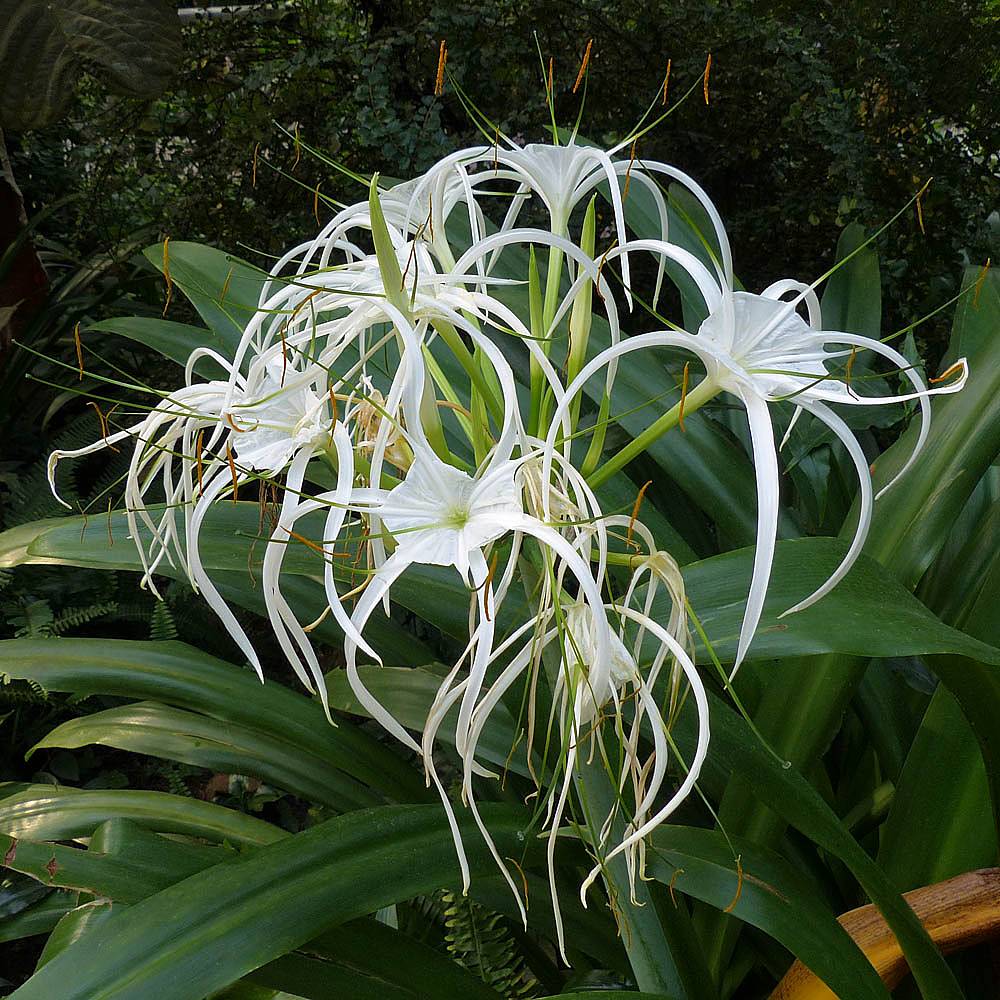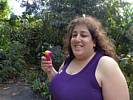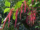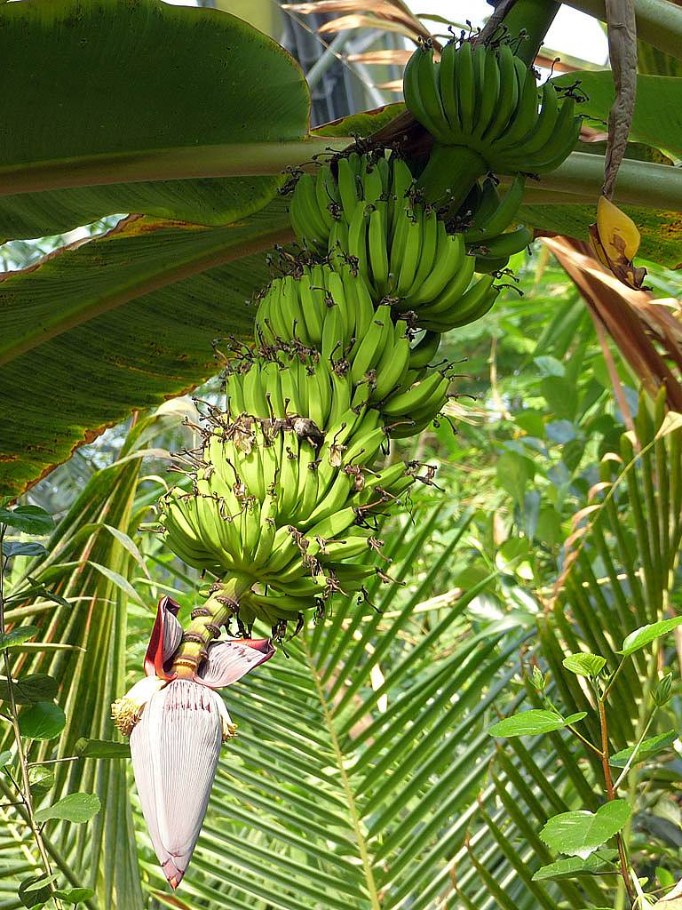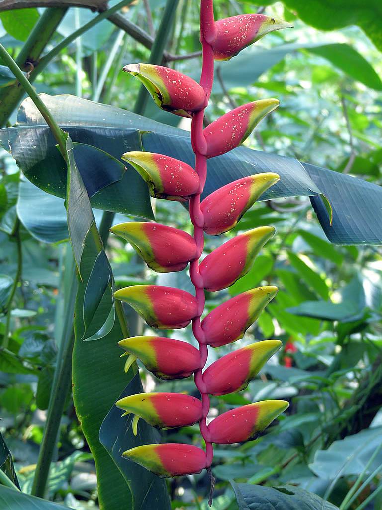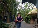 Tropical wetland. | Another pretty flower. | Renée starting to feel the heat and humidity. | A largepalm tree. | More pretty flowers that look like pipe cleaners. | Bananas! |