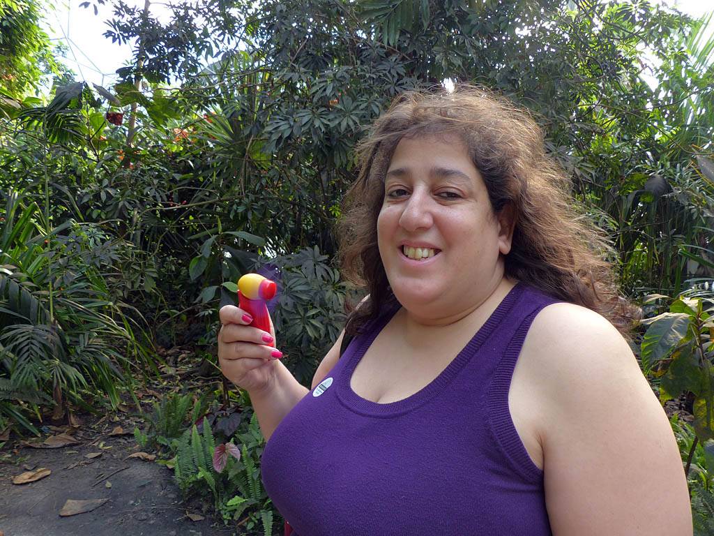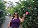Entering the rainforest biome. | Renée in the rainforest biome. | Big leaves and flowers. |