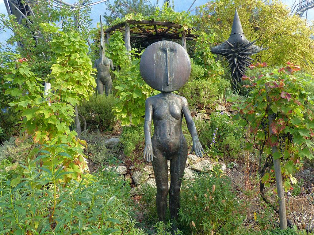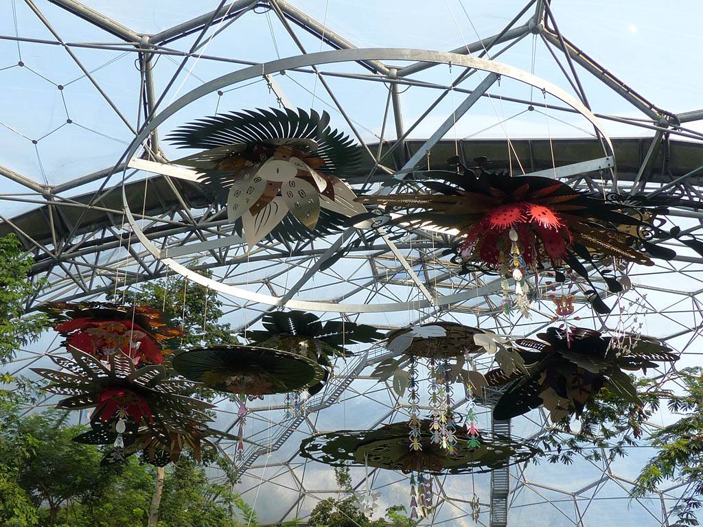 It was a slightly uncomfortable and noisy night (especially when a train went past nearby), and my nose stuffed up over night. It felt like I had a cold. Blast! However I wasn't about to let a possible cold spoil things. By the time we had breakfast at 8:15AM I felt a bit better thanks to a lovely cup of tea and a good munch. We left at 9AM, and just over an hour later arrived at the Eden Project. After getting our bearings we made a beeline for the tropical rainforest biome, enjoying some of the sculptures and views en route.