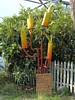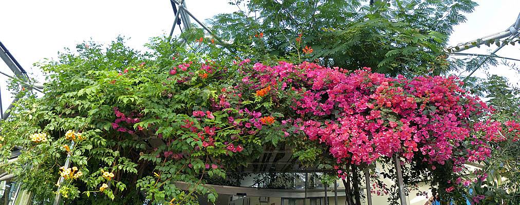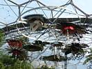 Another sculpture. | One of several chilli plants. | More sculptures. | A huge wisteria plant dangling from the biome ceiling like a curtain. | A nice flower display adorns the entrance doors too. |
