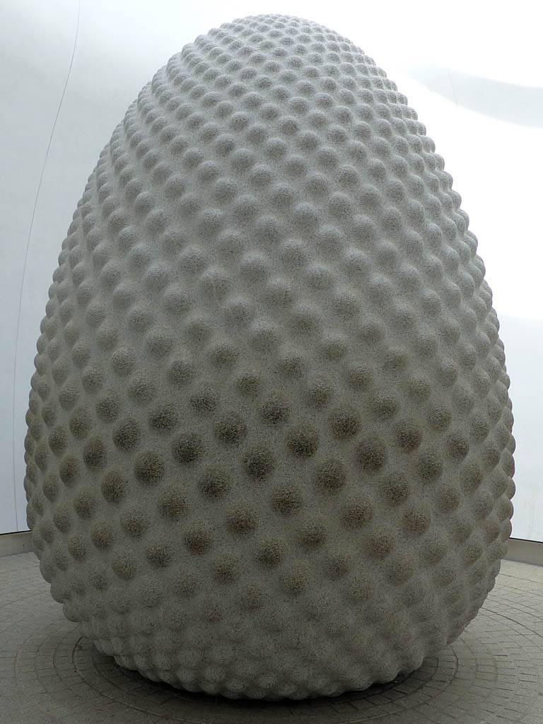 A sculpture called 'Seed', made from a 167 tonne block of granite (70 tonnes now). | A Hummingbird Hawk Moth feeding on Buddlhiea. | Getting on the road train to return to the visitor centre. |