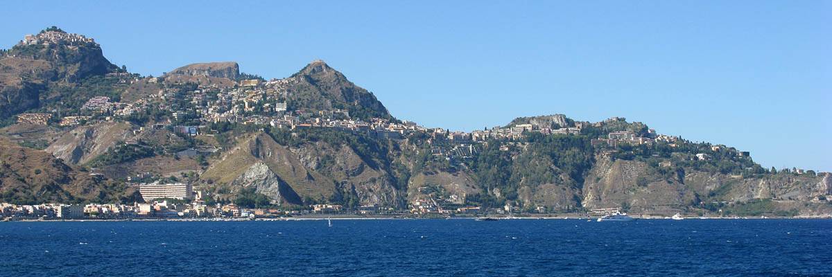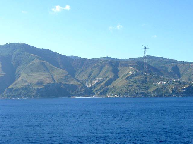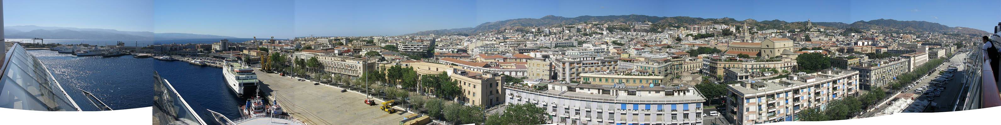 Views of the toe of Italy from the Straight of Messina. | 180 degree panorama of Messina as we approach the port. |