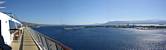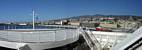 About to enter the harbour at Messina. | The view from the room after docking. | 180 degree panorama of Messina after docking. |