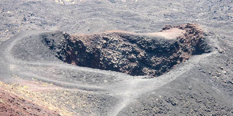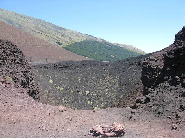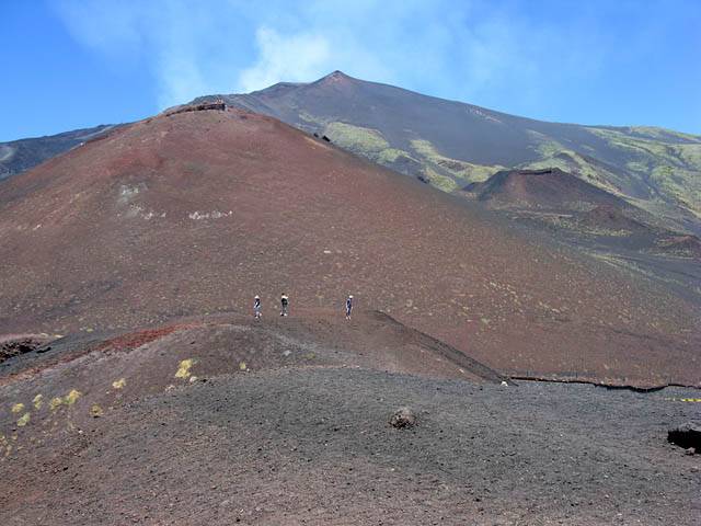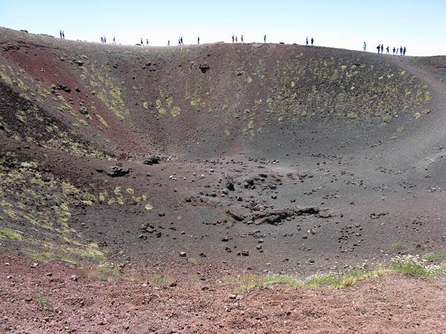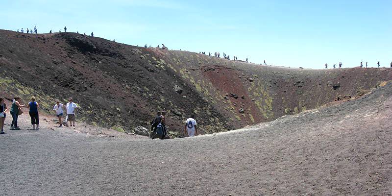 Looking around from the side of the Silvestri spent crater. What an alien landscape! | Views into the pit of the Silvestri spent crater, as well as the tourists lining the path around rim. | Looking up past more flank craters towards the summit. |
