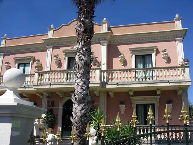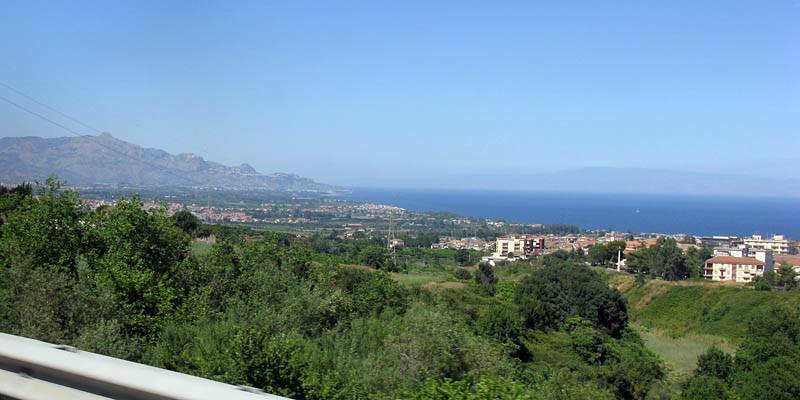 Pictures taken near the jewellery factory. | The jewellery factory looked more like a nice residential mansion. | Back on the autostrada heading towards Taormina and Naxos, visible in the mid distance. | Apparently this wall in Naxos is the oldest wall in Sicily. |