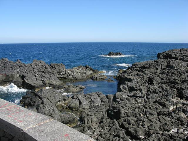 The trip down was just as fun. Back down to the villages below. I enjoyed watching the many butterflies including a Painted Lady and many other blue, yellow, red, white and stripy white ones. They were present even at 6000 feet. I saw a big swallowtail fly over the lava at one point. Eventually we stopped at the Jewel factory that looked more like a posh house. I was rather bored but atleast there were biscuits to satisfy my hunger for a while. Then we stopped at Naxos on the coast where an ancient lava flow had reached the sea. By now a migraine was kicking in. I thought I had left my pill box on the ship! Curses! As we headed back to the ship it got worse. But it failed to spoil the trip thankfully.