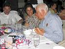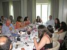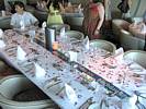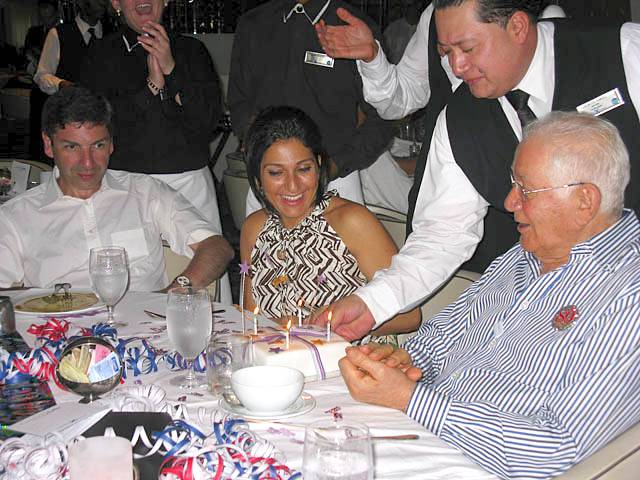 The birthday table laid out in Silhouette. | Enjoying the meal. Visible from centre left clockwise: Joy, Joseph, Arlett, Jane, Renée, Mike, Gemma, Natasha, Lisa, Amanda, Robert. Gary was off shot between Joy and Robert. | The birthday cake being brought over by Louis and candles blown out by Joseph. Happy birthday! |