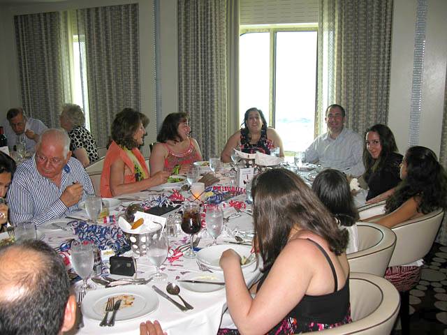 Back at the ship we rested after I made a beeline for migraine pills, and we changed to meet at Joseph's cabin for 6pm for champagne on his 80th birthday. Then we all went down together to Silhouette for supper. I was very hungry after not having a proper lunch... Meanwhile the ship set off out of Messina along the south coast of Italy. The cod goujons starter was more like a small spicy fish cake. The trout was ok but rather small. Atleast the bread was delicious again. The table was set up with confetti and a banner for the birthday. The chocolate lava cake for afters was delicious. Then a nice birthday cake arrived with candles and decorations - a Victoria Sponge with icing. I had 2 pieces. Sugar overload! Unfortunately this brought the migraine back a bit. Oops...