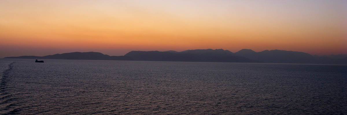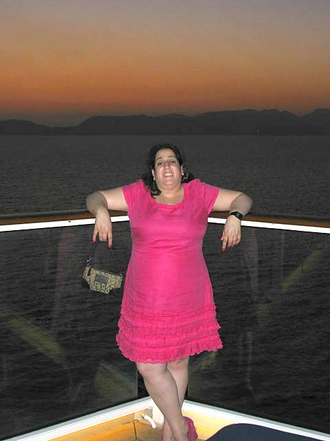 At 3PM we took a look at the Aqua Spa Café where healthy food is available, but it was closed. We then returned to the room to shower and get dressed. We then visited the shops on Decks 4 and 5 before returning to have a rest before changing to formal gear for the evening. Renée had a nap while I updated my diary and removed dud pictures from the camera. Meanwhile I spotted land go by around 5:50PM. The iPhone picked up a Greek signal so there starts our first Greek adventure.