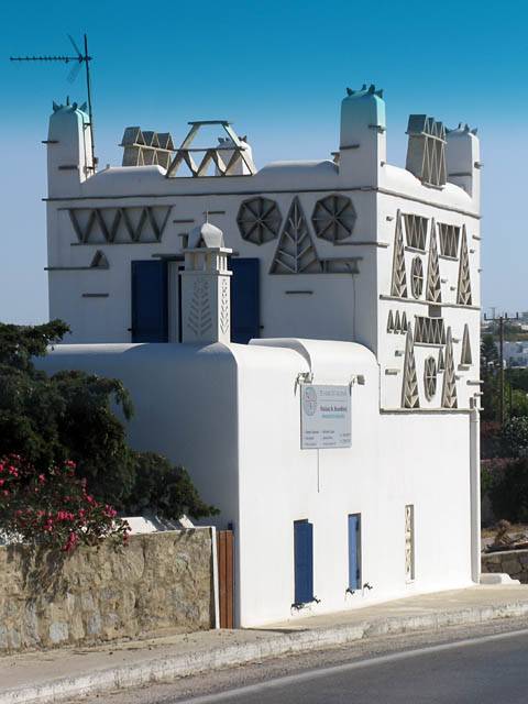Then we returned to Mykonos Town at 11:30 where we got off. On the way I was amused to see a Go Kart track and got a shot of a more colourful house on the island (both of which we had seen on the outbound journey too).