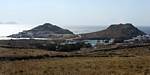 Another view of Delos as we backtrack towards Ornos. | One of many buildings in the style of a pigeon loft. Pigeon racing used to be big here apparently. | That guy has the right idea riding a motorbike along these lovely country roads. | Approaching Kalafatis. | Looking at Divounia (Breasts of Aphrodites). Apparently it looks like a pair of women's breasts according to the tour guide! | This island off shore is Ktapodia. |