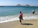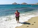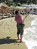 A panorama of the bay in which Agios Ioannis and Kapari sit. | Looking at Agios Ioannis, the beach on which the film Shirley Valentine was filmed, from a jeti near Kapari. | Renée on the jeti in front of Agios Ioannis. |