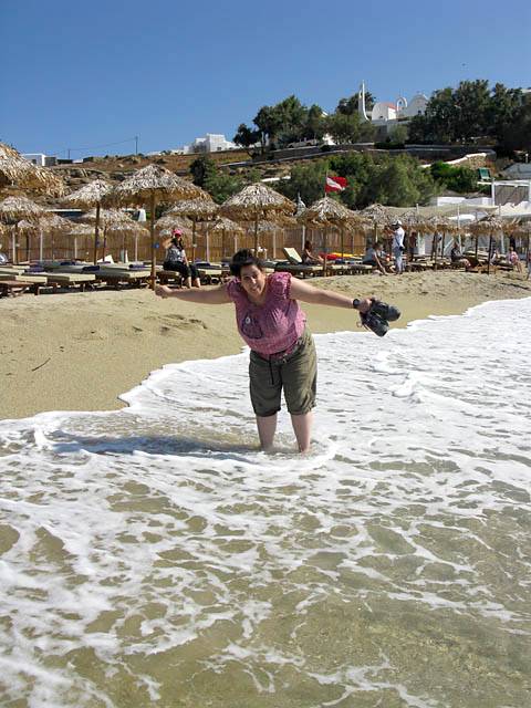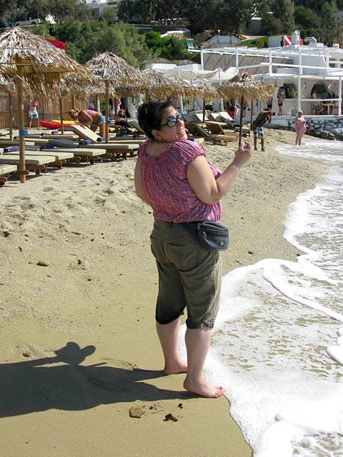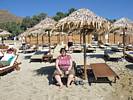 Having fun on Kalafatis beach. The pictures speak for themselves. Paradise! Cool but not cold water. Pleasantly warm with a nice breeze. Large sand grains so no sand blasting. |