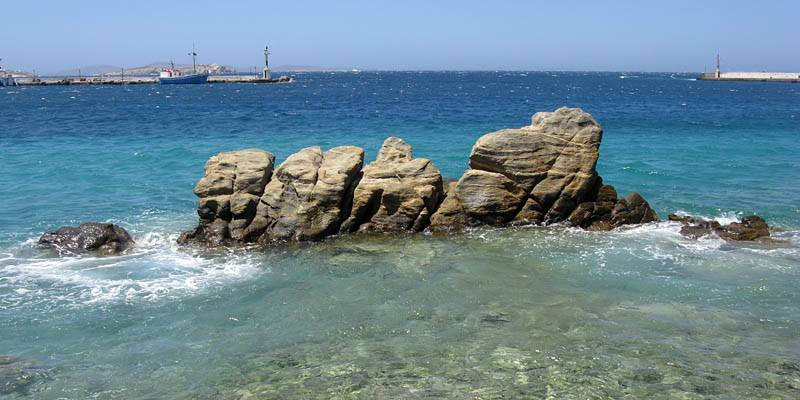 More views as we wander around the alleyways of Mykonos Town. | Arty view of rocks sticking out of the water as we start to head back towards the ship. |
