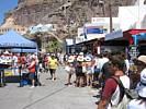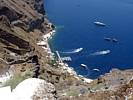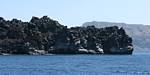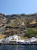 Riding past lots of lava blocks as we head back past Nea Kameni on the way to the port at Fira. | The Fira port is just right of the Equinox in this view. | Looking up at Fira as we wait to dock. |