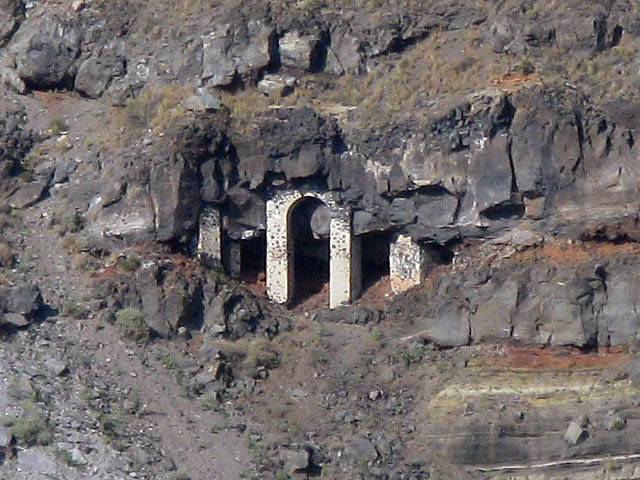 One more go at a 360 degree panorama in different lighting conditions before we depart. East is roughly centre again. | A long range shot of a curious looking cave with arched columns built into it. |