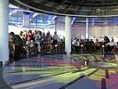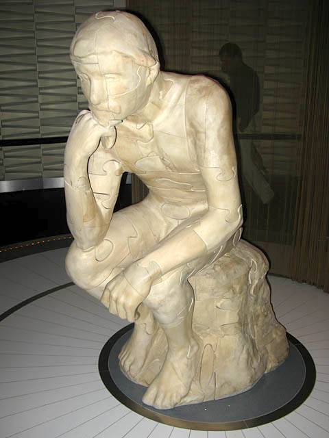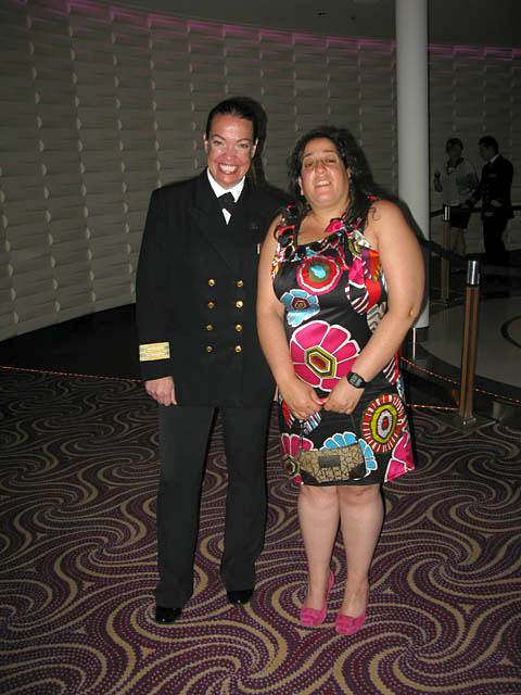 At 8PM we were let in. We were greeted by all the senior staff including the captain. After we walked around greeting everyone and getting drinks (champagne for Renée, orange juice for me) we asked someone if we could get a picture with the captain. He led us back to the captain and took my camera. So we got our picture with captain Michael Karatzas. Mid party another senior officer gave a speech, and the sunset lit up the room in an orange glow. After 45 minutes officers started leaving. We left at 8:55PM. I took a picture of a nice sculpture near the entrance on the way out.