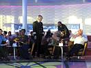 We went down to Silhouette at 6:20PM. Several of us had Mushroom Vol-au-vent for starters. It was quite tasty albeit very small being just a single one. I then had a Chow Mein Salad as my mains. The 'Chow Mein' were actually a few crunchy 'noodles' on top (garnish) and salad leaves underneath. It was still tasty but not enough. So at 7:45PM we headed up to Oceanview where I grabbed 8 Sushi pieces before we headed to the Sky Lounge on Deck 14 Fwd a few minutes early. We had our picture taken while we waited for the party to start.